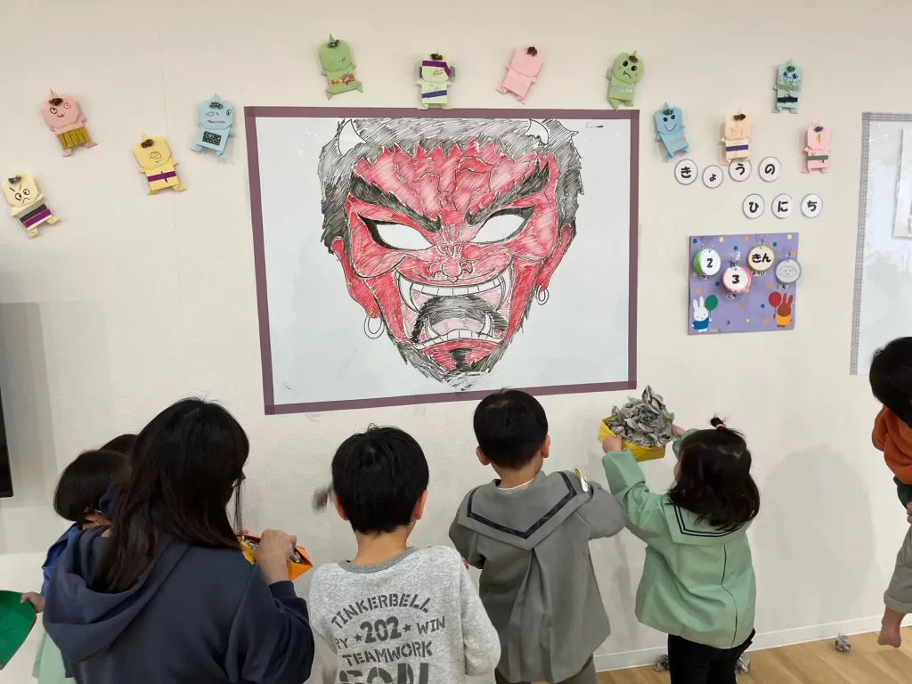 こんばんは♪ kids tree県庁前教室です! 本日は2月3日ということで、節分の日でした👹 事前に子どもたちと一緒に作った枡と新聞紙を丸めて豆に見立てたものを使って、 ホワイトボードに書いてある鬼に向かって 豆ま... -